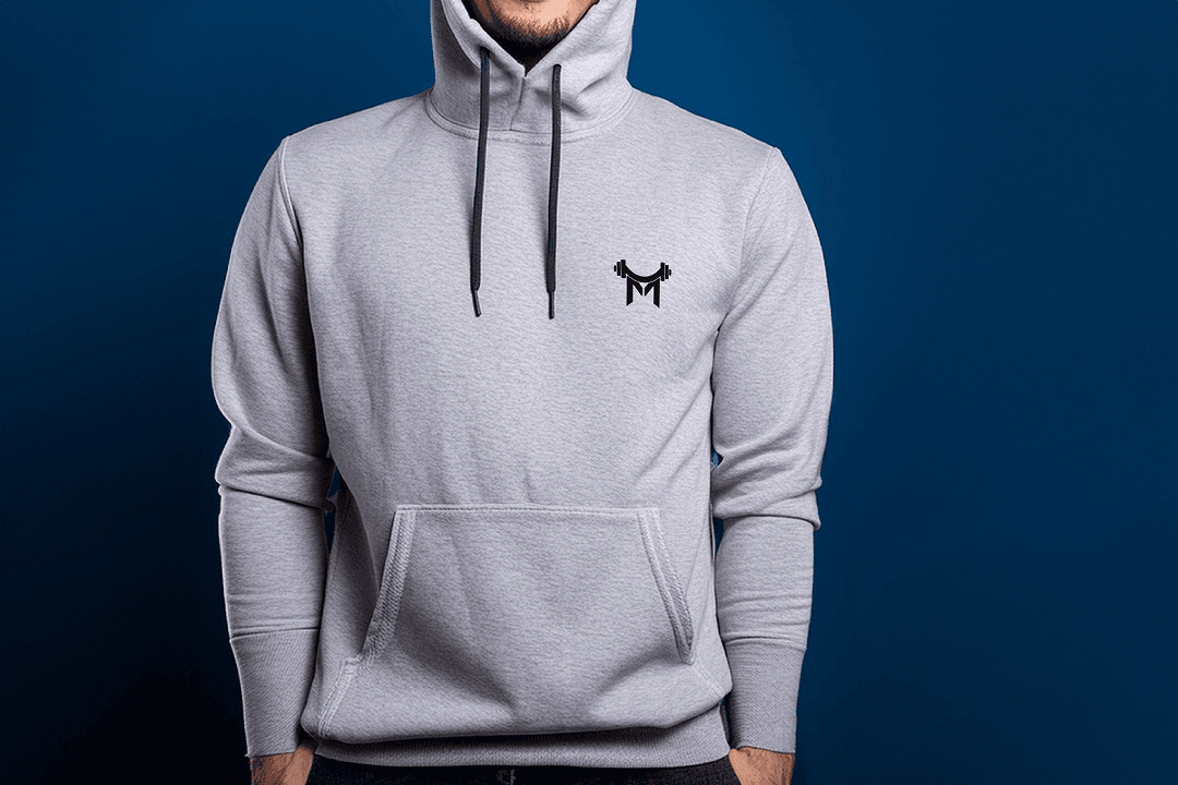 הלוגו: יצרנו מונוגרמה (M) המבוססת על יציבות וטכניקה של סקוואט.